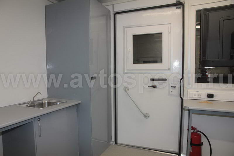 • На правой стене фургона установлена входная дверь в бытовой отсек с окном.