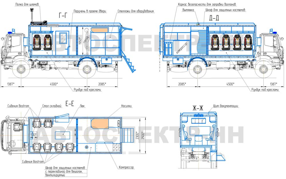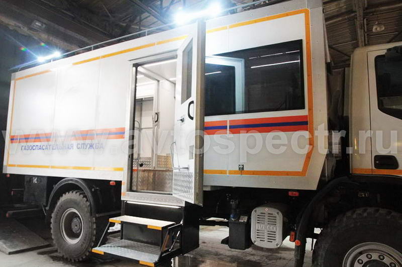 Автомобиль газоспасательной службы (далее — АГС) на базовом шасси «IVECO-AMT EuroCargo MLC150E28W» предназначен для оперативной доставки газоспасательного отделения 8 человек, снаряжения и оборудования к месту возможной аварийной ситуации на территории опасного производственного объекта.