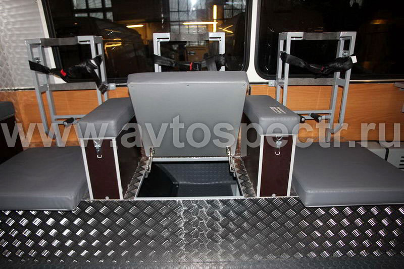 • Места для боевого расчета с элементами  крепления одно баллонных дыхательных аппаратов. Отделка подиума – дюраль.