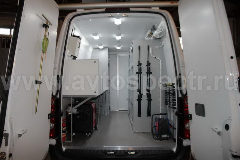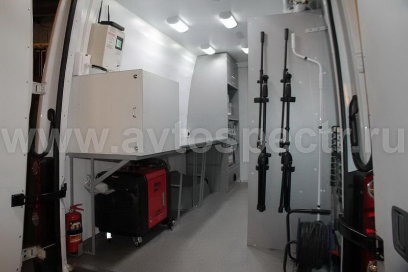 • На правой стенке фургона в передней части смонтированный электрощит.