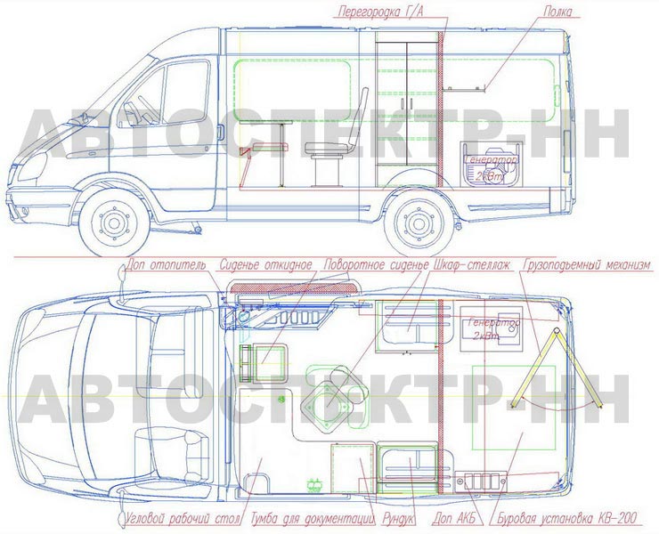 Мобильная дорожная лаборатория на базе автомобиля ГАЗель позволяет разместить рабочие места персонала и измерительный приборный комплекс. Автономная система энергоснабжения, отопления и кондиционирования позволяет осуществлять замеры в любое время. Номенклатура установленного оборудования и компоновочная схема отсеков может меняться в зависимости от выполняемых задач и количества экипажа.
