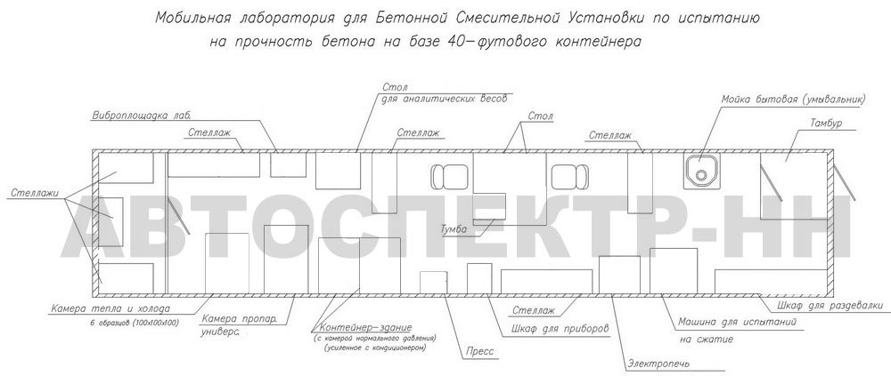 Передвижная строительная лаборатория MOBILAB® на базе 40 футового контейнера или мобильного здания предназначена для лабораторного сопровождения объектов строительства с проведением испытаний и контроля качества материалов, изделий и конструкций, включая грунты, цемент, щебень, песок, стальные изделия и арматуру, растворы, смеси на соответствие нормативной документации.