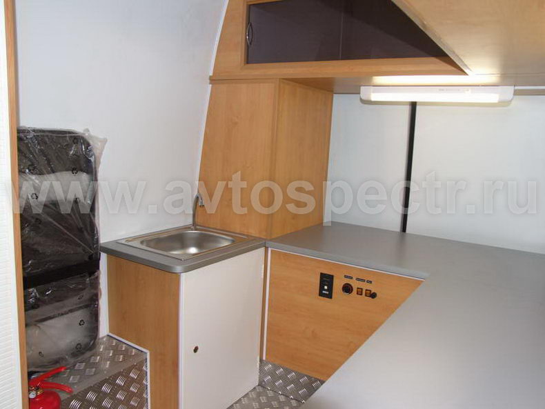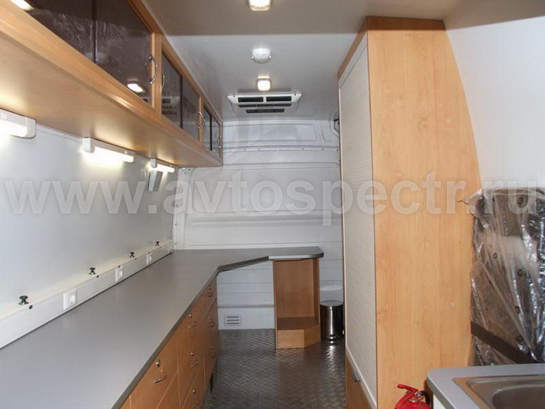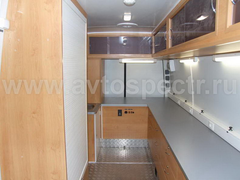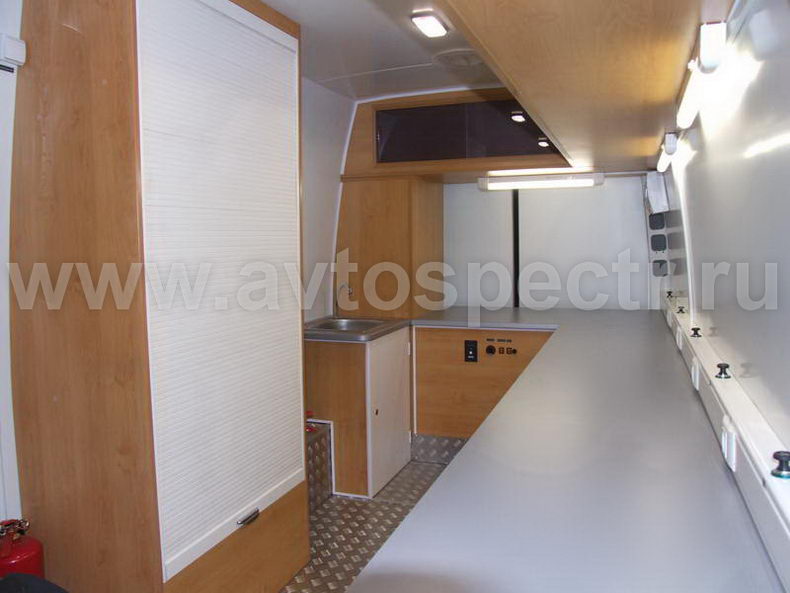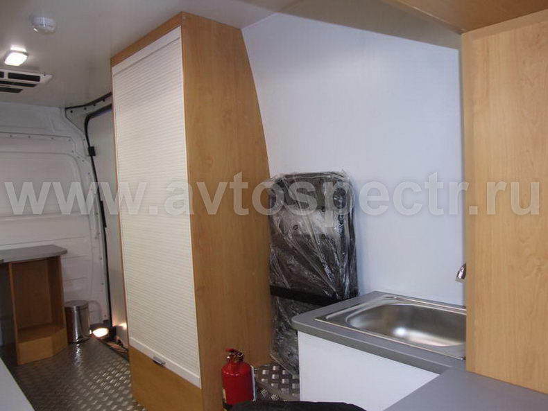 • Отделка потолка и периметра салона, включая двери целиком - композитные пластиковые панели.