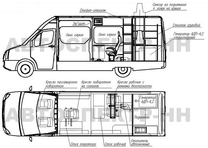 • Вся электрическая разводка внутри фургона в кабель-каналах с возможностью оперативного доступа.