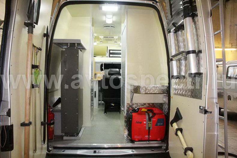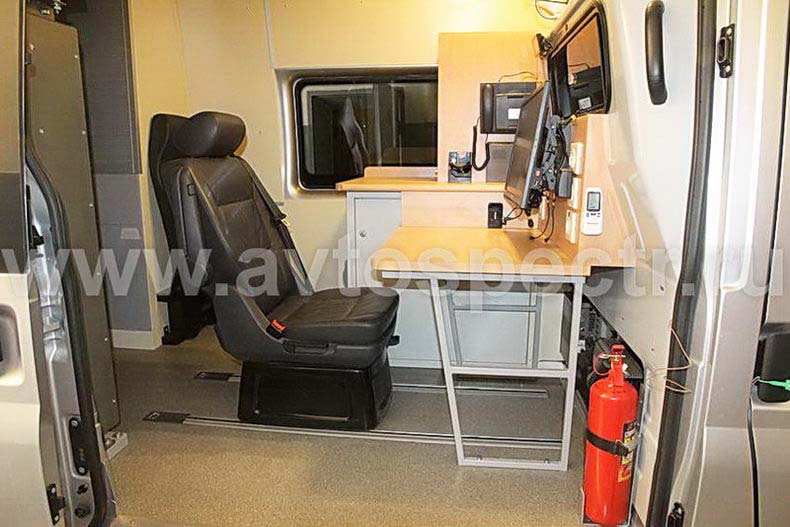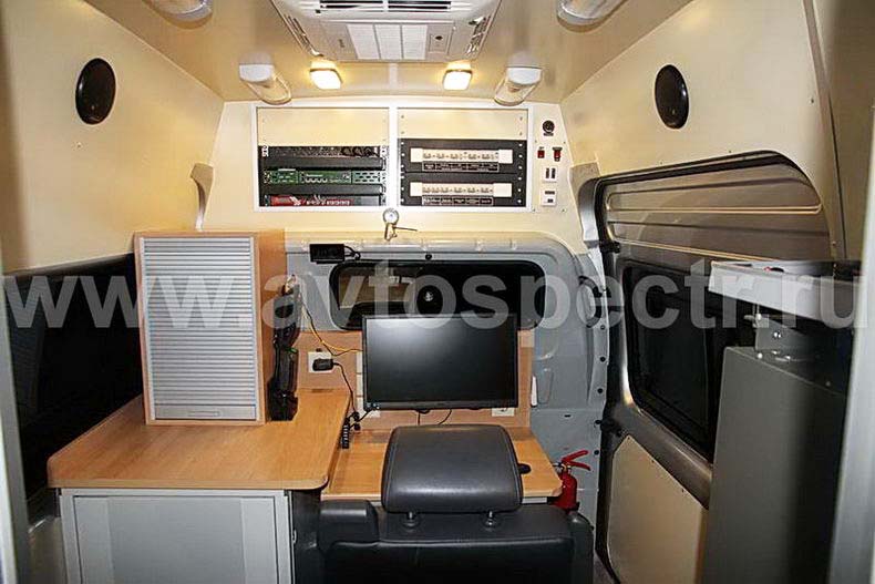 Передвижная радиационная лаборатория на шасси Ford Transit предназначена для организации работ по радиационному мониторингу территории. Машина укомплектована рабочими местами персонала, приборами радиационной разведки, вычислительным и предающим оборудованием, автономным энергоснабжением, отоплением и вентиляцией. Точная комплектация комплекса подбирается исходя из выполняемых задач.