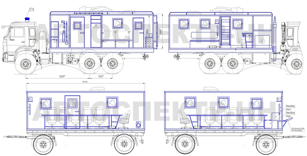 Мобильный узел связи на базе КАМАЗ-43118 с прицепом