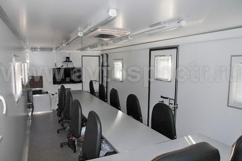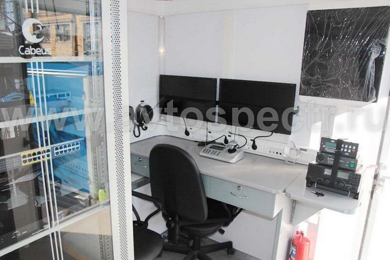 • Кресла (2 шт.) расположены между столом и задней панелью оперативного отсека. Кресла имеют подлокотники, подставку «звезда» на роликах, механизм поворота на 360° и изменения высоты. В транспортном положении кресла фиксируются.