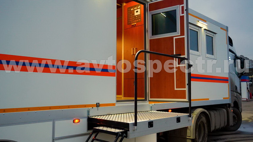 Мобильный пункт управления (МПУ) на базе полуприцепа предназначен для организации взаимодействия, получения и обработки информации, координации деятельности сил и средств. Полуприцеп, оснащенный необходимыми средствами связи и жизнеобеспечения, позволяет разместить и обеспечить работу личного состава и руководства. Штабной модуль управления изготовлен на базе полуприцепа, что позволяет в полной мере использовать преимущества данного шасси.