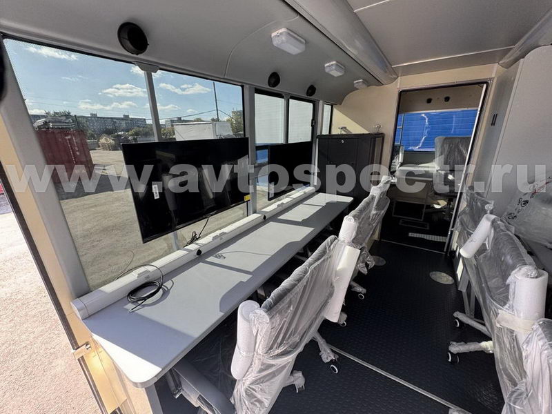 Автомобиль модели АВТОСПЕКТР Mobicom 3921DD «Мобильный пункт управления» (МПУ) предназначен для доставки оперативного штаба к местам проведения работ, организации взаимодействия, получения и обработки информации, координации деятельности сил и средств. Это спецтранспорт, оснащенный необходимыми средствами связи и жизнеобеспечения, позволяет разместить и обеспечить работу личного состава и руководства.
