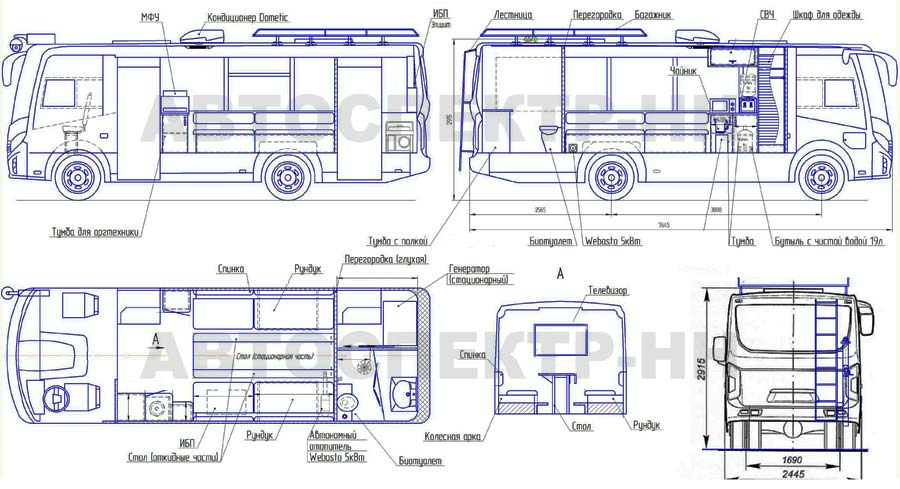 | Габаритные размеры, мм | 7645 х 2445 х 2915 |