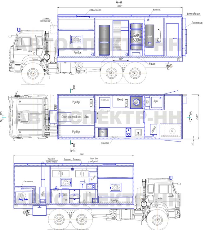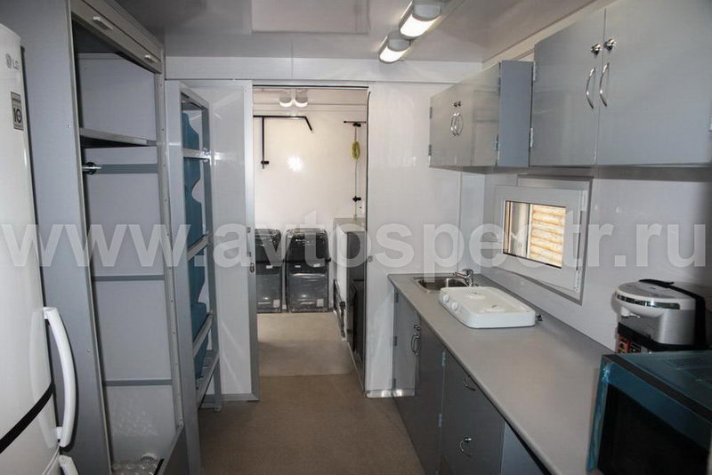 Такое оснащение превращает КамАЗ с оборудованным жилым отсеком в полноценный дом на колесах, в котором можно будет жить в течение всего периода выполнения работ.