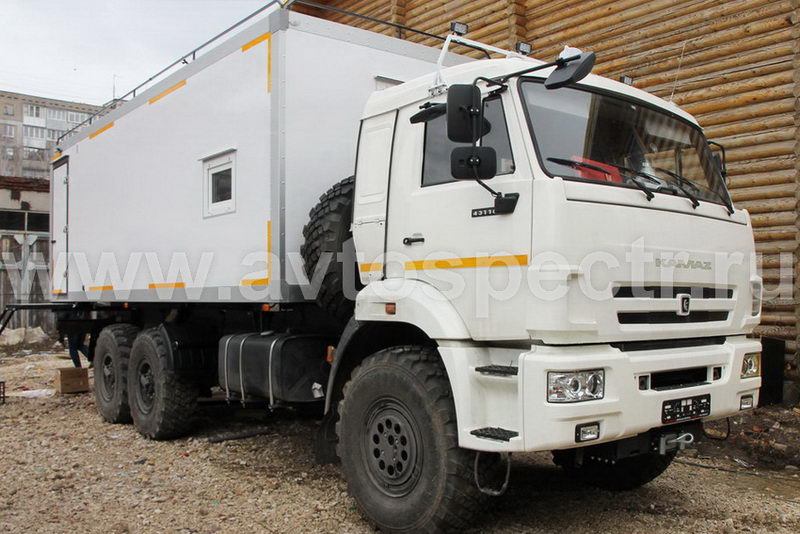 Жилой модуль на автомобиле КАМАЗ 43118 предназначен для обеспечения функционирования бригады в полевых условиях. Дом на колесах оснащен системами жизнеобеспечения, энергоснабжения и гигиены, оборудован бытовым модулем и местами для отдыха экипажа. Может использоваться спецслужбами, ремонтными и поисковыми бригадами по всей территории и в любом климате России.