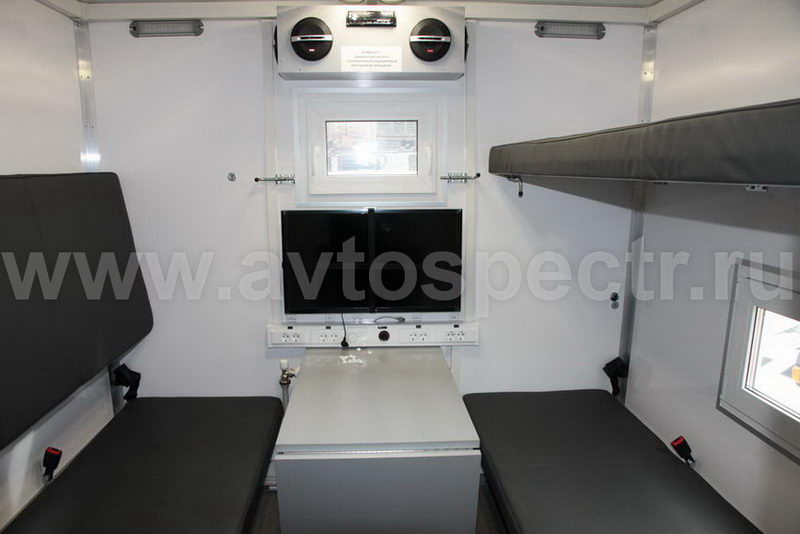 «Автоспектр-НН» предлагает купить КамАЗ – дом на колесах, обустроенный на базе автомобильного шасси. С его помощью можно доставить бригаду к месту выполнения работ и обеспечить ей комфортные условия проживания на удалённом от города объекте. В доме на колесах предусмотрена полноценная система жизнеобеспечения, с её помощью можно гарантировать сотрудникам полноценные условия для отдыха. Такая машина оптимально подойдет для аварийных бригад и спасательных служб.