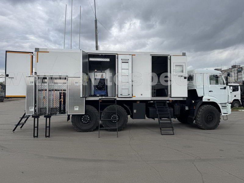 Специальный автомобиль «Аварийная Мастерская» Автоспектр Mobilab 688222, на базе КАМАЗ 43118 предназначена для проведения аварийно-восстановительных работ при локализации и ликвидации возможных аварийных ситуаций на системах газораспределения независимо от давления в газовых сетях, диаметра и материала газопровода без отключения давления сети, а также для обеспечения условий проведения работ (электроснабжение, освещение, питание).